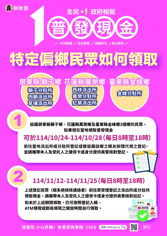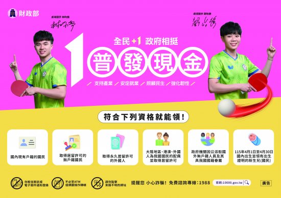 「全民+1 政府相挺」普發現金1萬元政策資訊