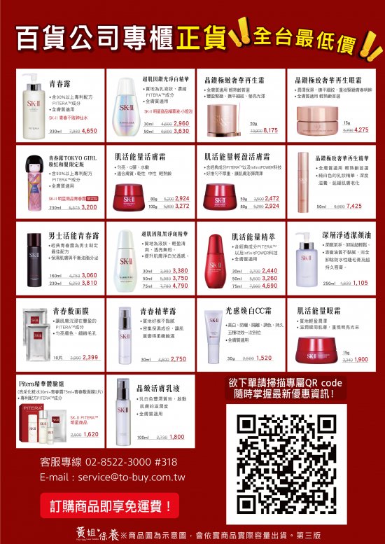(二)優惠項目:SK-IIT百貨公司專櫃正貨(如附件DM)-市場最低價 |