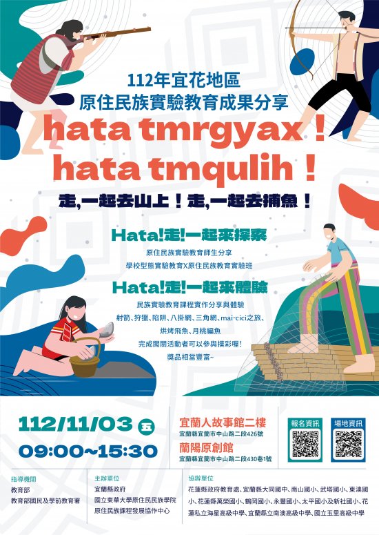 二、 | 旨揭活動係由宜蘭及花蓮地區原住民族實驗學校進行課程、教學與學生學習成果分享,並透過闖關活動之方式,由各校師生合作進行民族文化課程體驗,期能促進與會人員對於原住民族實驗教育有更為深入之理解,盼創造一聚焦、交流及多元對話的機會,提供相互參照與學習的平台。 |